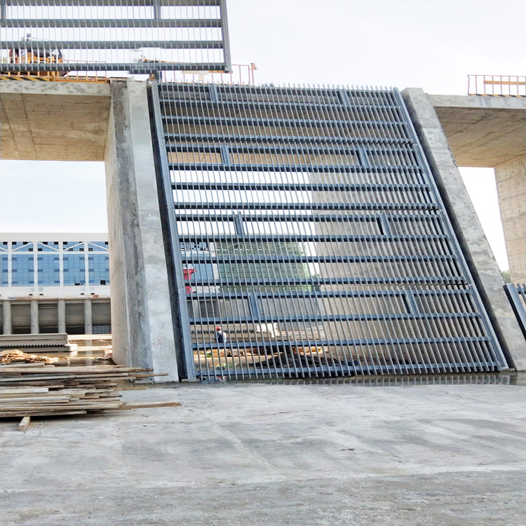 攔污柵一般設(shè)在設(shè)在進(jìn)水口前,用于攔阻水流挾帶的水草、漂木等雜物(一般稱污物)的框柵式結(jié)構(gòu)。攔污柵由邊框、橫隔板和柵條構(gòu)成,支承在混凝土墩墻上,一般用鋼材制造。柵條間距視污物大小、多少和運(yùn)用要求而定。