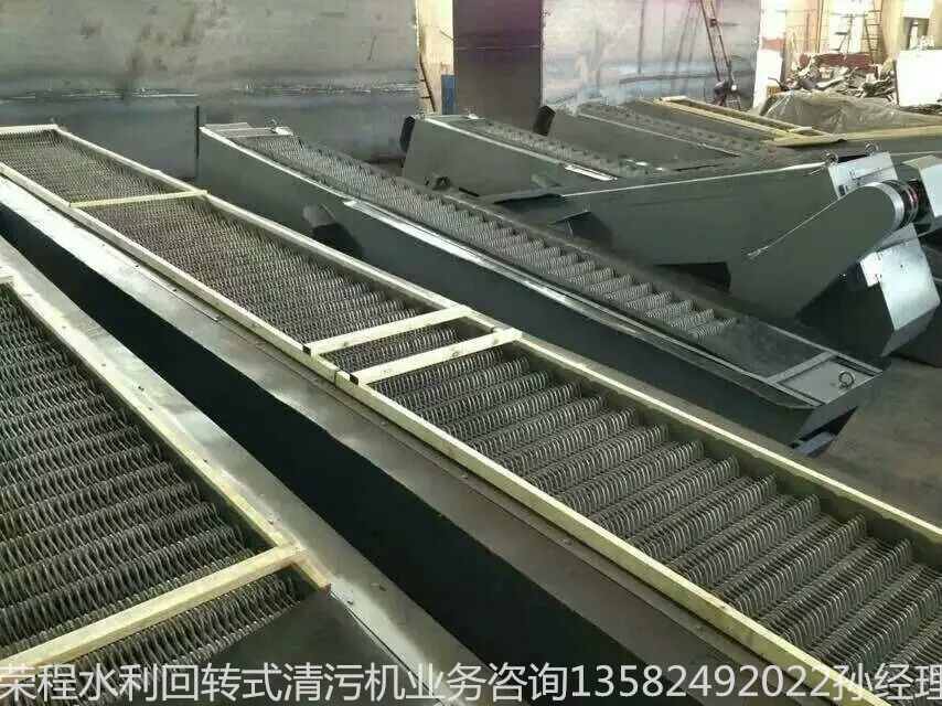 3.抓斗式格柵除污機(jī)主要由驅(qū)動(dòng)裝置、耙齒機(jī)構(gòu)、清刷機(jī)構(gòu)等組成 。由一種獨(dú)特的耙齒裝配成一組回轉(zhuǎn)格柵鏈。在電機(jī)減速器的驅(qū)動(dòng)下,耙齒鏈進(jìn)行逆水流方向回轉(zhuǎn)運(yùn)動(dòng)。耙齒鏈運(yùn)轉(zhuǎn)到設(shè)備的上部時(shí) 循環(huán)式齒耙清污機(jī)專賣,由于槽輪和彎軌的導(dǎo)向,使每組耙齒之間產(chǎn)生相對(duì)自清運(yùn)動(dòng) 循環(huán)式齒耙清污機(jī)用途說明,絕大部分固體物質(zhì)靠重力落下.按水流方向耙齒鏈類同于格柵,在耙齒鏈軸上裝配的耙齒間隙可以根據(jù)使用條件進(jìn)行選擇。當(dāng)耙齒把流體中的固態(tài)懸浮物分離后可以保證水流暢通流過。整個(gè)工作過程是連續(xù)的 循環(huán)式齒耙清污機(jī),也可以是間歇的。