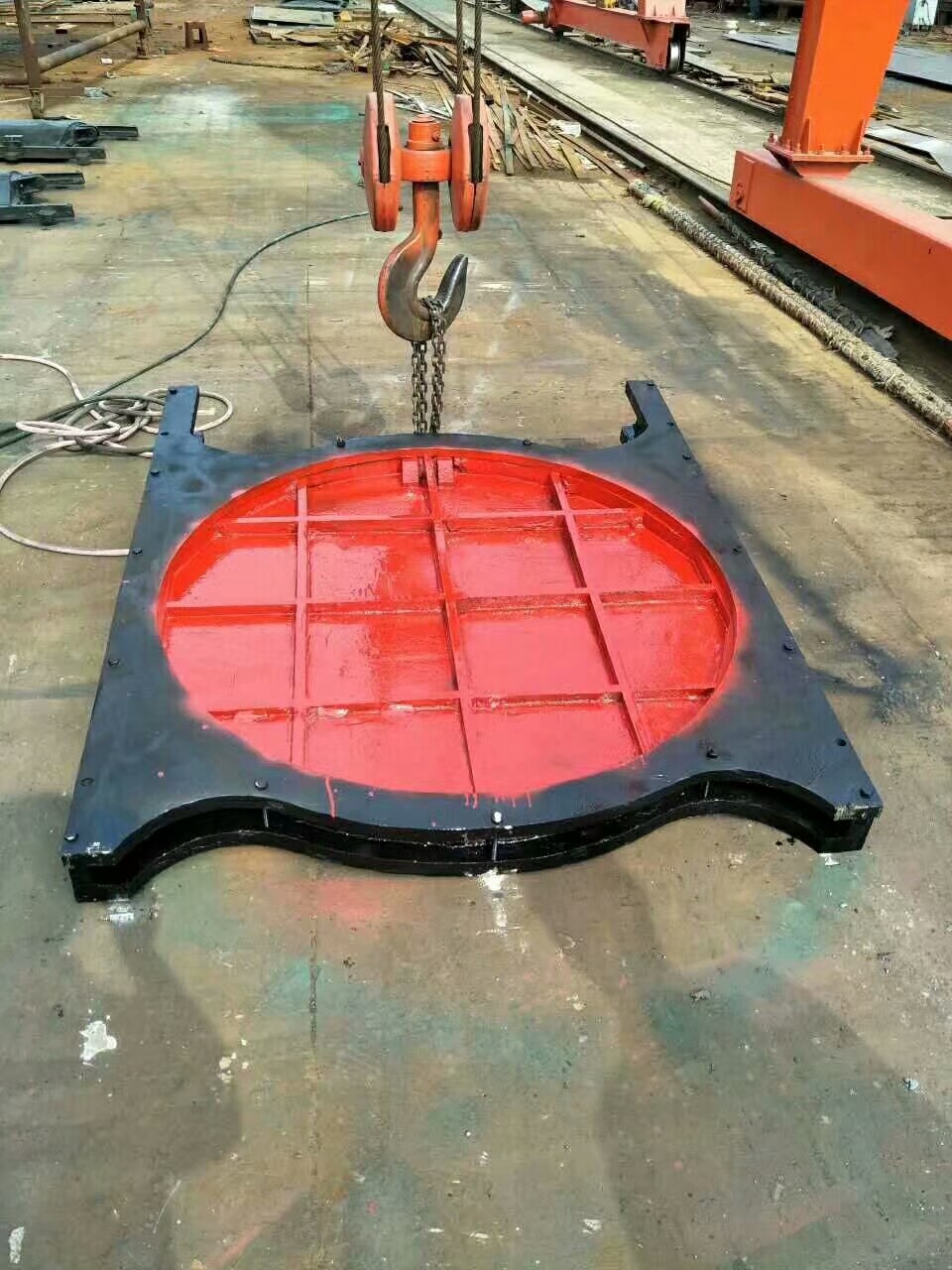 圓閘門由門框、閘板、導(dǎo)軌、密封條、可調(diào)整密封機(jī)構(gòu)等部件組成。具有結(jié)構(gòu)簡(jiǎn)單,密封性能好,耐磨性強(qiáng),操作簡(jiǎn)單,安裝方便,使用壽命長(zhǎng),規(guī)格齊全,適用性廣等特點(diǎn)。(該系列產(chǎn)品鑄造時(shí)可以根據(jù)客戶需要加鑲銅或單雙向止水)