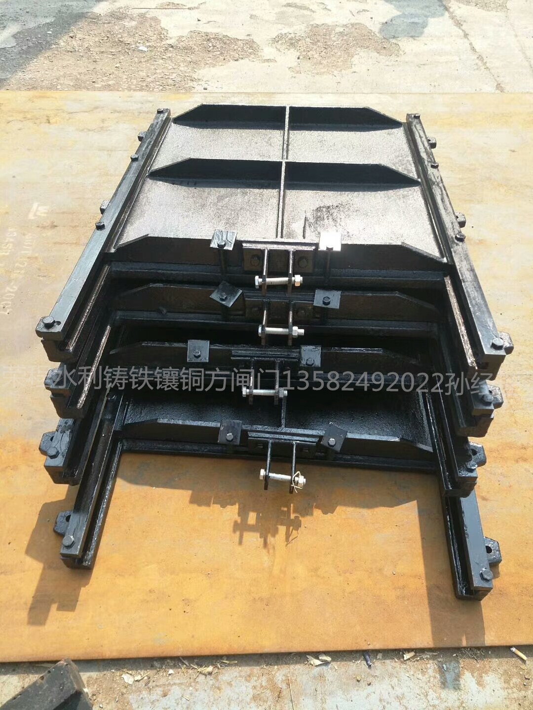 1、鑲銅鑄鐵方閘門由門框、閘板、導(dǎo)軌、密封條、驅(qū)動螺桿、提升螺母/吊架和可調(diào)密封機構(gòu)組成。門框和閘門采用優(yōu)質(zhì)灰鑄鐵或球墨鑄鐵制造。導(dǎo)軌采用不銹鋼螺栓定位銷和門框兩側(cè)對稱布置。中小型閘門,其導(dǎo)軌可與車門框架澆注。導(dǎo)軌長度一般為閘門全開高度的1/2~1/3,整體結(jié)構(gòu)強度高、剛度高、耐磨性好、耐蝕性好、承壓能力高。